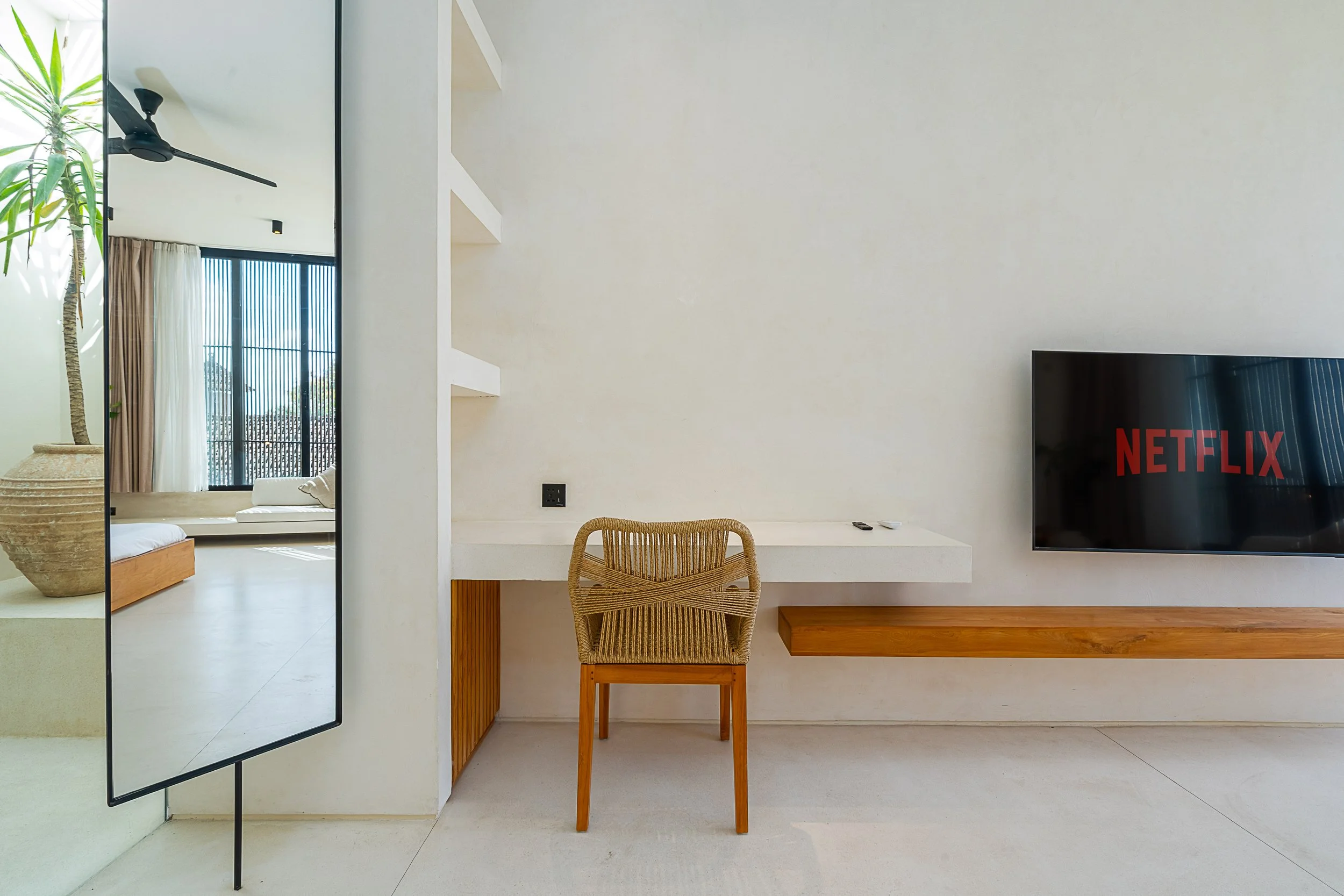 This brand-new, luxurious 2-bedroom villa combines comfort and style in a peaceful setting. With earthy tones and a green-filled setting, it's the perfect place to unwind or focus on your work.